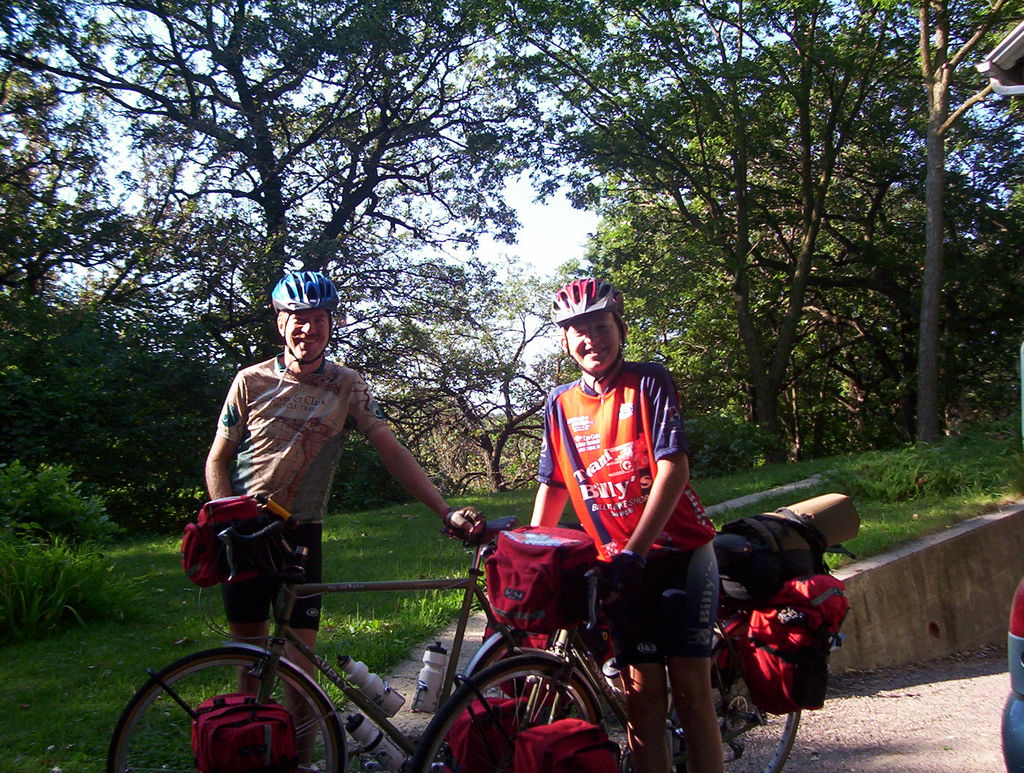 We entered South Dakota today. There wasn’t even a sign to greet us as we crossed the Big Sioux River, which wasn’t very big. The ride today was uneventful. We left our ranger friend’s house at about 8:30 and made it to Vermillion by 12:30. The heat index was very high again this afternoon and we wanted to ride in the morning, before it got hot. The ride was relaxing and flat, on up the Missouri River floodplain. We have one more day of flat riding tomorrow to Yankton before we hit the hills. Keith is enjoying the slower pace for the next three days.