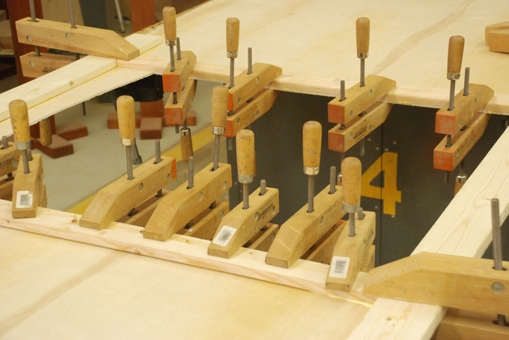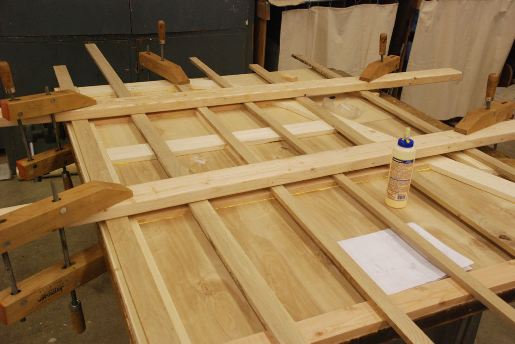 - Glueing the framework in the galley area.
