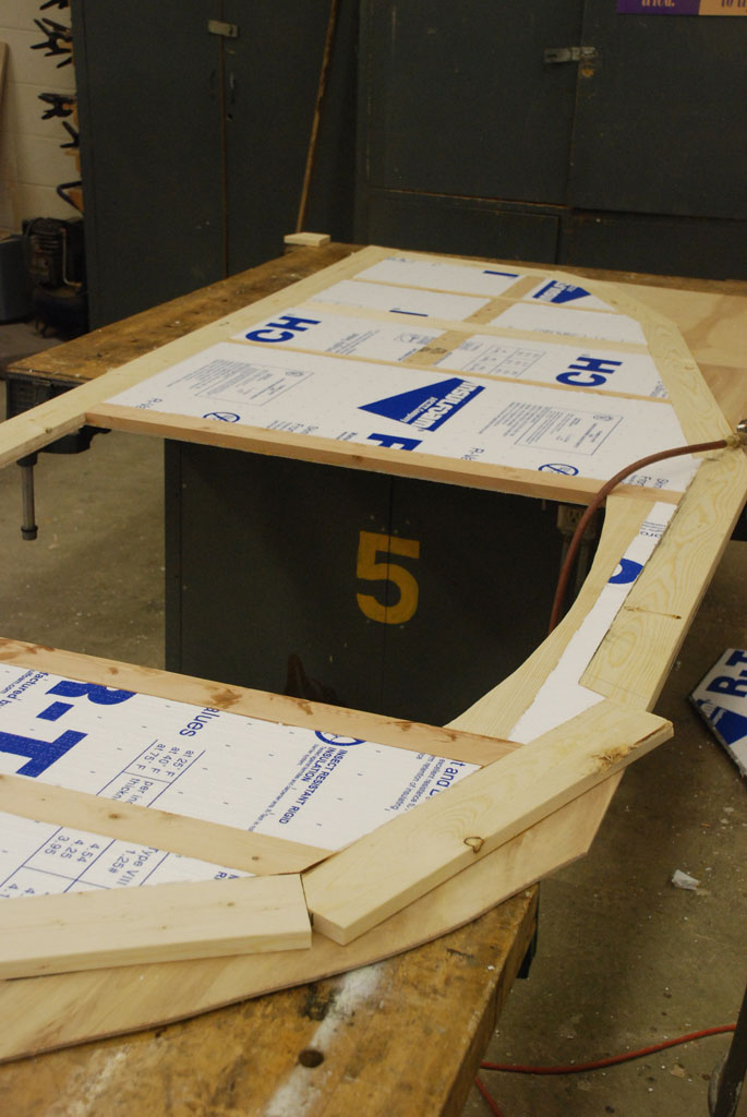 - The insulation is cut and fit into place. It doesn’t need any glue as the fit is tight and it will be enclosed by the interior plywood.