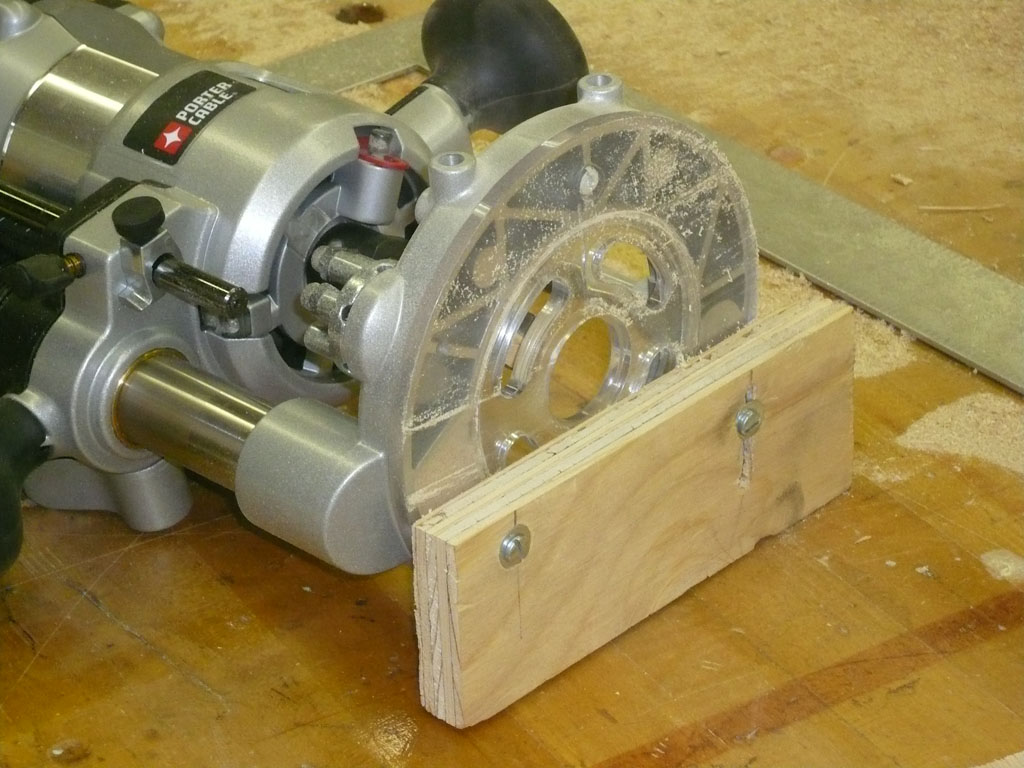 - Cut a 15/16″ rabbet 1/4″ deep into the top inside edge of the cabin portion of the walls. This will hold the inside skin of the ceiling (3/16″ lauan) and the roof spars (3/4″). To do this I made an adjustable fence for the router and used a 3/4″ bit.
